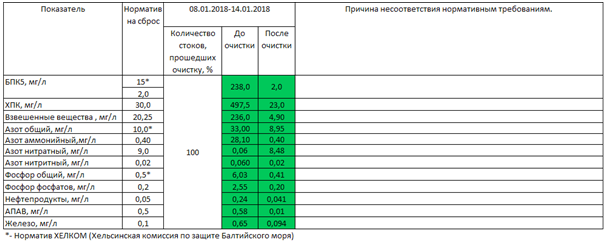 Отбор проб 08.01.2018 - 14.01.2018: