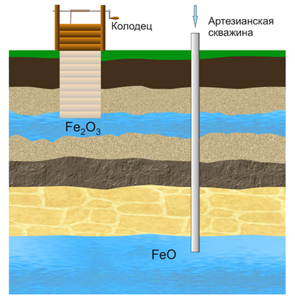 Особенно сложно с водой из колодцев, так как она ближе к поверхности и больше подвержена загрязнению сторонними веществами. Оксид железа из верхних слоев Fe2O3 в воде будет выглядеть как рыжий осадок, потому что здесь в основном встречаются породы с трехвалентным железом.